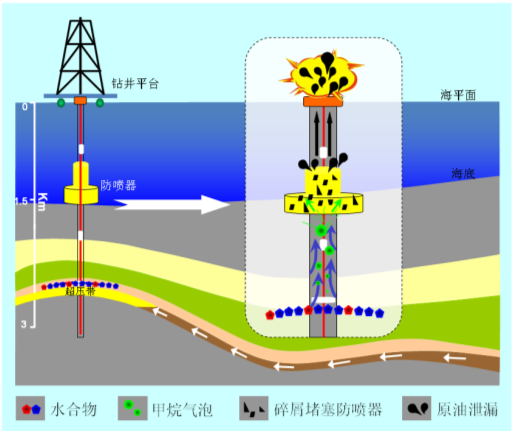 天然氣水合物分解可能引發的鉆井風險示意圖