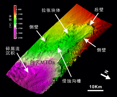 南海北部陸坡白云海底滑坡地形地貌圖