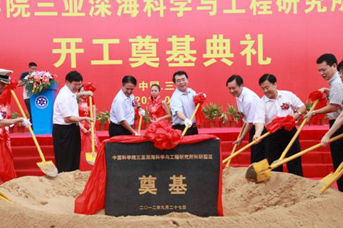 會見后,白春禮與羅保銘一同出席了中科院三亞深海所科研園區開工奠基典禮并致辭。儀式上,三亞深海所籌建組組長、中科院高技術局局長王越超介紹了三亞深海所項目情況。白春禮宣布三亞深海所科研園區建設開工,并與嘉賓一起揮鍬培土奠基。
