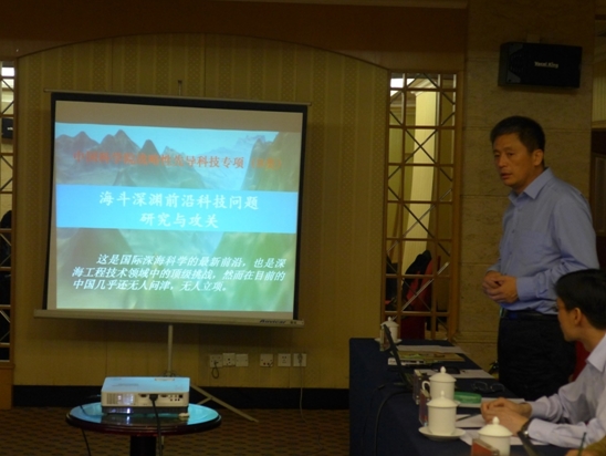 三亞深海所項目組總工程師張艾群,以及來自聲學所、沈陽自動化所、金屬所的項目骨干成員參加會議。中科院重大項目科技任務局信息海洋處、科技促進發展局高技術處和三亞深海所相關部門領導出席會議。