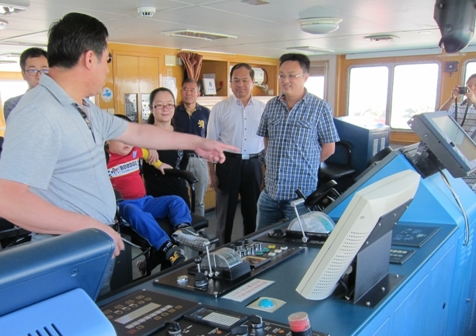 海洋局北海分局副局長劉心成和“大洋一號”船長分別為大家介紹了“大洋一號”的船舶結構、船載儀器設備、各項參數性能以及歷次重大執航任務等情況。考察團一行參觀了駕駛室、實驗室、作業甲板,對船舶動力系統和綜合科學考察能力進行了詳細了解。