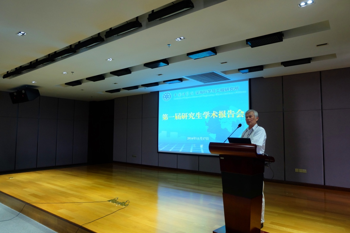 為促進研究生學術交流,培養研究生綜合科研能力,激發科研創新意識,11月17日上午,深海所第一屆研究生學術報告會在學術報告廳召開。謝強副所長等7位博士生導師出席會議并擔任評委。謝強副所長在報告會開幕式上致辭,對首屆研究生學術報告會的召開表示祝賀,并鼓勵研究生們要積極參與所內外的學術活動,在學術上要勤于思考,敢于探索,勇于創新。
