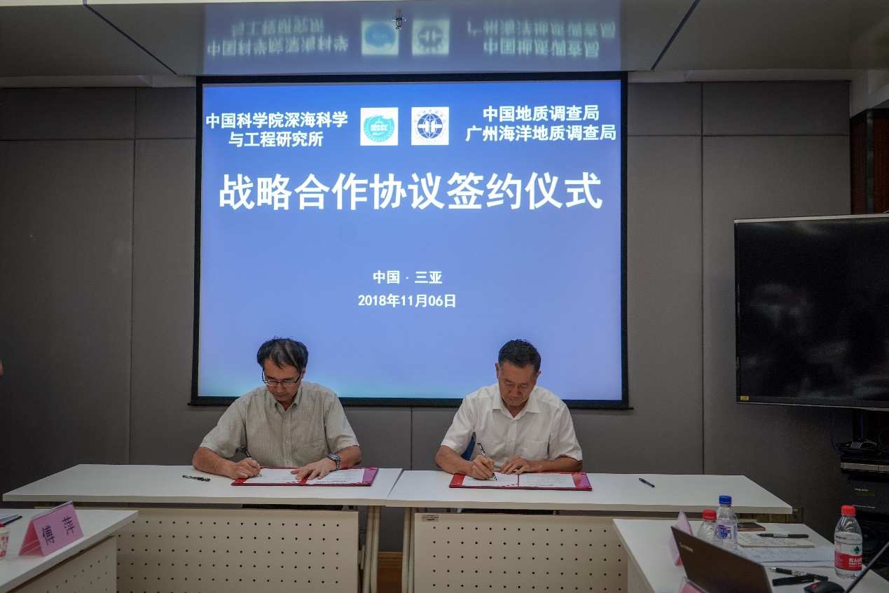 11月6日下午,深海所與中國(guó)地質(zhì)調(diào)查局廣州海洋地質(zhì)調(diào)查局在深海所簽署戰(zhàn)略合作協(xié)議。