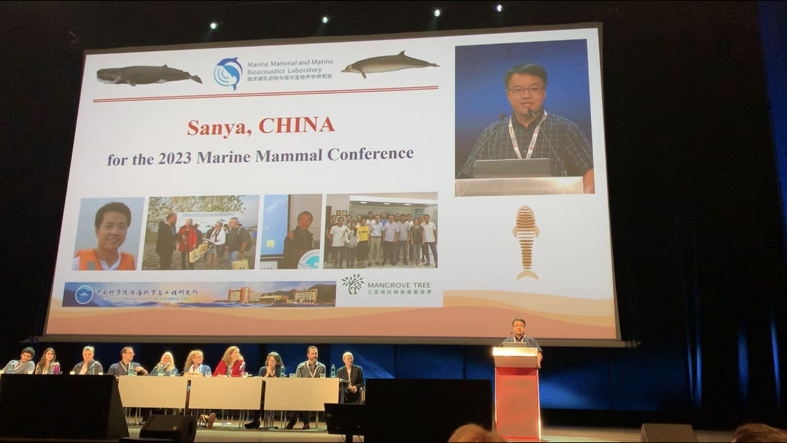 12月10日晚,李松海研究員在大會主會場為申請三亞作為2023年世界海洋哺乳動物雙年會主辦地進(jìn)行了口頭報(bào)告,介紹了三亞獨(dú)特的地理位置、承辦會議條件及南海獨(dú)特的鯨類資源分布情況。本次競爭主辦權(quán)的城市還包括新加坡和澳大利亞珀斯