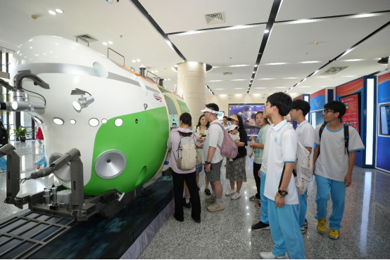 ????科技之光主題活動通過科普講座、深海裝備展和深海VR體驗,向公眾展示深海探索的科技突破。郭威研究員帶來的《擁抱海洋,解密深?!房破罩v座,從認識海洋講起,介紹了人類探索海洋的歷史,分享了擁抱海洋和解密深海而研制的各種“交通工具”,以及“搭乘”這些“交通工具”進行全海深和全海域的探索,最后以學業(yè)發(fā)展和社會經(jīng)驗雙重成長路徑為例,引導同學們樹立正確的人生觀、成才觀、擇業(yè)觀 ,?鼓勵同學們在奮斗中創(chuàng)造精彩人生。