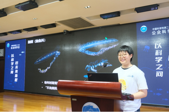 “自然之光”主題活動通過科普講座、開放海洋生物繁育基地和海洋生物標本展等,向公眾展示深海生物的發(fā)光奇跡。由林僅帶來的《誰在海底發(fā)光?》科普講座,向大家介紹了蝦、魷魚、深海魚類、發(fā)光細菌等具備發(fā)光能力的海洋生物,講述了深海熱液區(qū)的高溫煙囪體在噴出熱液的過程中會輻射出光,并與大家分享了深海生物發(fā)光和光能利用機制。