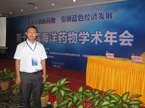 10月18日至20日,三亞深海所深海微生物活性物質研究組助理研究員韓壯博士受邀參加了在海南海口召開的2013年第十一屆海洋藥物學術年會。會議得到了國家863計劃海洋技術領域辦公室的大力支持,由中國藥學會海洋藥物專業委員會、中國生物化學與分子生物學會海洋分會、中國微生物學會海洋微生物學專業委員會聯合舉辦,中國熱帶農業科學院熱帶生物技術研究所承辦。中國海洋大學管華詩院士、顧謙群教授和北京大學的林文翰教授等一批國內外著名學者受邀出席。