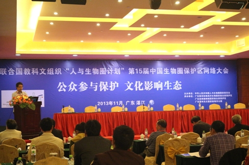 11月20—23日,三亞深海所海洋哺乳動物與海洋生物聲學研究組研究員李松海、助理研究員林明利及研究助理邢露如,在廣東湛江參加了以“公眾參與保護、文化影響生態(tài)”為主題的聯(lián)合國教科文組織“人與生物圈計劃”第15屆中國生物圈保護區(qū)網(wǎng)絡(luò)大會。會議由中國人與生物圈國家委員會主辦,廣東雷州珍稀海洋生物國家級自然保護區(qū)、廣東徐聞珊瑚礁國家級自然保護區(qū)和廣東雷州烏石國家海洋公園承辦。國家有關(guān)部委領(lǐng)導、各地國家級自然保護區(qū)負責人、相關(guān)科研院校專家學者、中外知名NGO保護組織代表等近百人參會。
