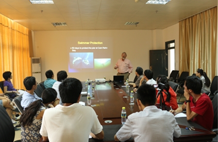 4月13日,應李松海研究員邀請,美國夏威夷大學Paul Eugene Nachtigall教授來訪三亞深海所,并作了題為:海洋哺乳動物研究綜述(Marine Mammal Research Overview)的報告。三亞深海所籌建組副組長謝強,國家海洋局第一海洋研究所姜瑩博士,遼寧省海洋水產科學研究院張培君博士及三亞深海所部分科研人員參加了會議。