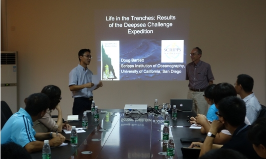 712日,美國Scripps海洋研究所Douglas Bartlett教授應王勇研究員邀請到訪三亞深海所,做了題為海斗深淵生命:挑戰者深淵考察結果Life in the Trenches: Results of the Deep sea Challenge Expedition)的學術報告。三亞深海所部分科研人員及瓊州學院8位老師參加了報告會。
