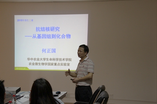 3月30日,應韓壯博士邀請,華中農業大學何正國教授到訪三亞深海所,并做了題為“抗結核研究---從基因組到化合物”的學術報告。