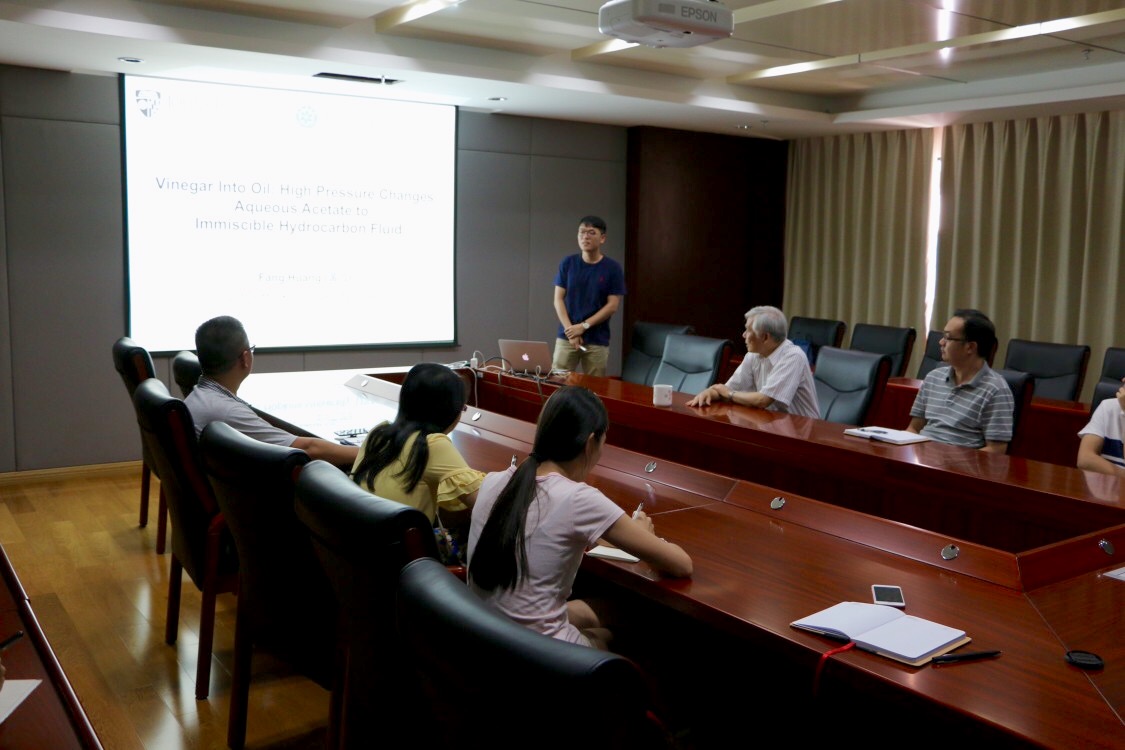 7月12日,應深海極端環(huán)境模擬研究實驗室周義明研究員的邀請,美國約翰霍普金斯大學地球與行星科學系博士生黃放到所訪問交流,作了題為“Vinegar into Oil: High Pressure Changes Aqueous Acetate to Immiscible Hydrocarbon Fluid”的學術報告。