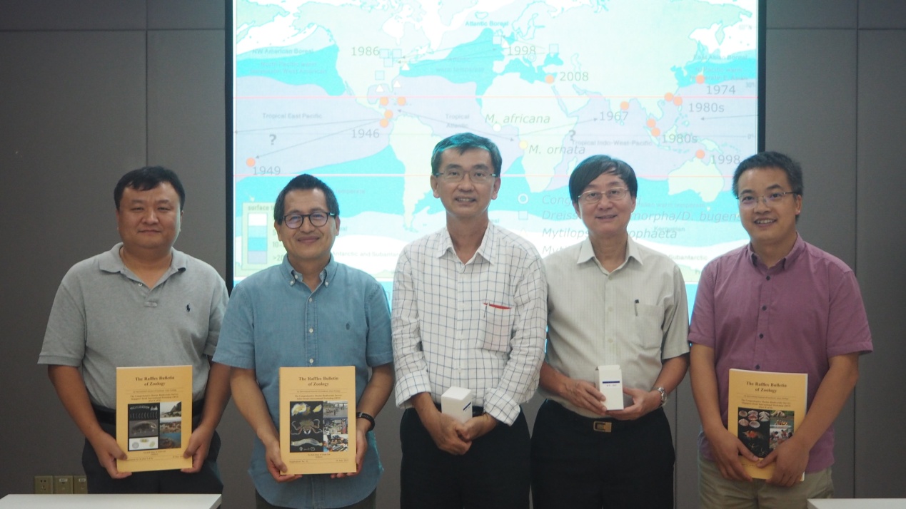 在交流報告上,新加坡國立大學(xué)熱帶海洋科學(xué)研究所所長Wong Sek Man作題為“An introduction to Tropical Marine Science Institute, National University of Singapore (新加坡國立大學(xué)熱帶海洋科學(xué)研究所介紹)”的報告,就新加坡國立大學(xué)熱帶海洋科學(xué)研究所現(xiàn)狀以及研究方向進行介紹。新加坡國立大學(xué)熱帶海洋科學(xué)研究所高級研究員Dr. Tan Koh Siang作題為“Establishing an environmental baseline for deep-sea seabed nodule harvesting in the Clarion-Clipperton fracture zone (CCFZ), East Pacific Ocean(東太平洋克拉里昂-克利珀斷裂帶深海海底結(jié)核開采環(huán)境基線建立)”的報告并與參會人員就物種鑒定以及樣品采集等方面問題進行討論。