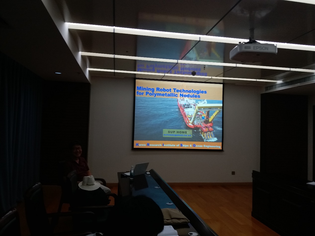 從1994年開(kāi)始SUP HONG所帶領(lǐng)的采礦團(tuán)隊(duì)相繼完成了MineRo-1,MineRo-2,Mining Robot,Pumpi, Buffee等逐漸成熟的采礦設(shè)備,并介紹了很多在海試中可能出現(xiàn)或者已經(jīng)出現(xiàn)不可避免的問(wèn)題,值得我們考慮和深思。在關(guān)于Mining Robot的介紹中SUP HONG研究員耐心的解答我們提出的關(guān)于布放回收,行走軌跡以及工程機(jī)械方面的難題。也為我們今后海試過(guò)程中可能出現(xiàn)的問(wèn)題進(jìn)行了警示。同時(shí)提醒我們?cè)诤5鬃鳂I(yè)海底資源開(kāi)采的過(guò)程中,保持海底的自然生態(tài)環(huán)境和安全是最重要的事情。