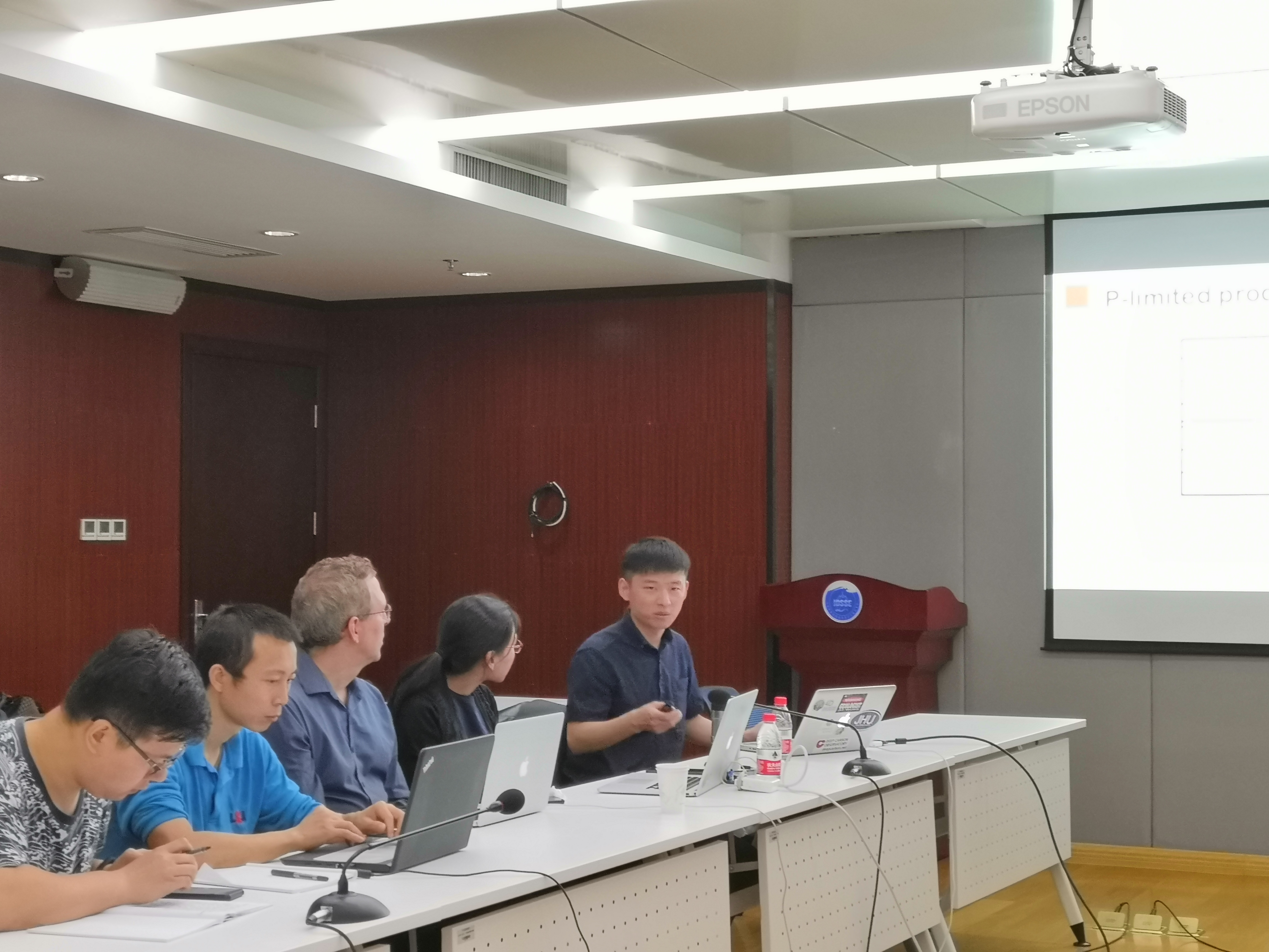 報告詳盡地描述了早期地球的磷循環及其對生命進化的影響,其研究結果表明:鐵(II-磷酸鹽(vivianite)的沉淀可能導致極低水平的海水磷;太古代海洋中海水的低P/Fe比例有利于不產氧的光自養生物的生長,抑制藍藻成為生態和生物地球化學循環的優勢群體;晚太古代硫化物氧化風化的增加提供了一種提高P/Fe比例的機制,有利于藍藻的生長,觸發了大氣的不可逆氧化。此外,郝記華博士還向大家介紹了關于土衛二海水中有磷元素存在的初步結果。會后,郝記華博士與到會師生進行了交流探討。