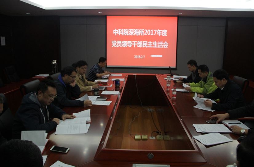 2月7日,中國科學院深海科學與工程研究所在815會議室召開2017年黨員領導干部民主生活會。會議由所黨委副書記代亮主持,廣州分院分黨組副書記、紀檢組長周傳忠、監審處處長彭斌到會指導。