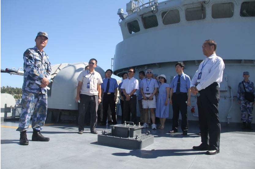 七月的三亞,滿目蒼翠,碧海藍(lán)天,軍港內(nèi)一艘艘戰(zhàn)艦在碧波青山前顯得尤為雄偉壯觀。此次教育活動(dòng)參觀的戰(zhàn)艦為綿陽艦。據(jù)介紹,綿陽艦是中國自行設(shè)計(jì)建造的新型導(dǎo)彈護(hù)衛(wèi)艦,該艦曾赴亞丁灣、索馬里海域執(zhí)行護(hù)航任務(wù)。在官兵的帶領(lǐng)下,大家先后參觀了反艦、防空、反潛等各式武器裝備,了解各類武器性能,近距離觀察體會(huì)了近年來海軍建設(shè)發(fā)展取得的輝煌成就。