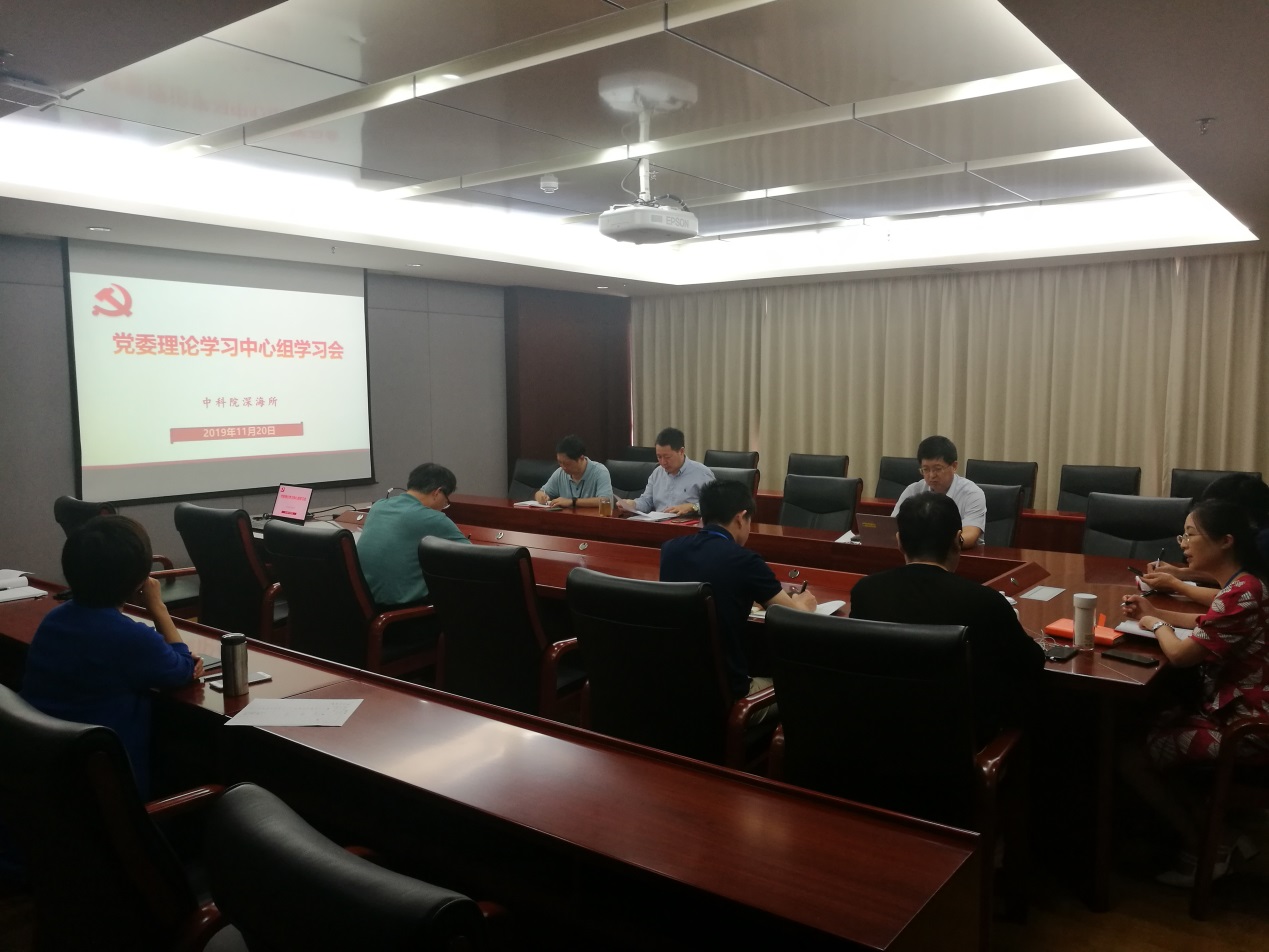 11月20日下午,中國科學院深海科學與工程研究所在綜合樓815會議室召開黨委理論學習中心組學習會,重點學習領會中央十九屆四中全會精神。在所領導班子成員、黨委委員、各部門負責人等參加學習會。