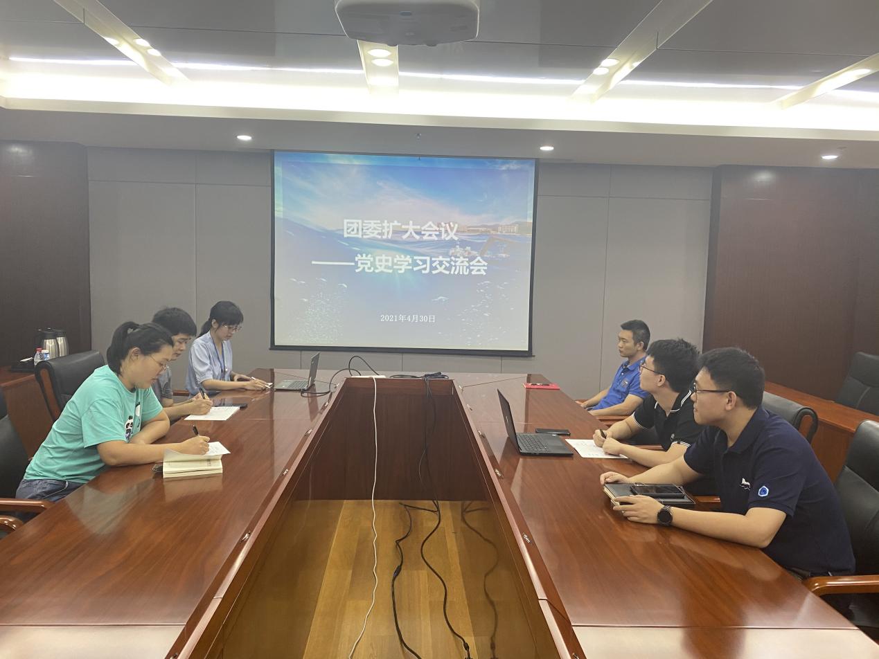 2021年4月30日下午,共青團中國科學院深海科學與工程研究所團委召開擴大會議,對中國共產黨黨史進行集中學習。會議由團委副書記邢露如主持,職工支部及研究生支部團委委員共6人參加了會議。