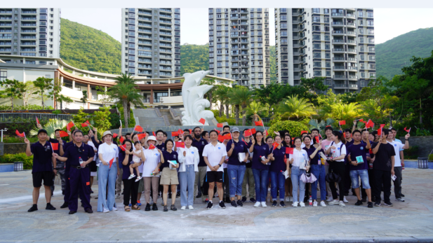 下午4點半,全所成員統一著裝,精神抖擻地從科研園區迎賓廣場出發,沿著鹿回頭路至半島云邸附近處,最后到達生活園區噴泉廣場。
