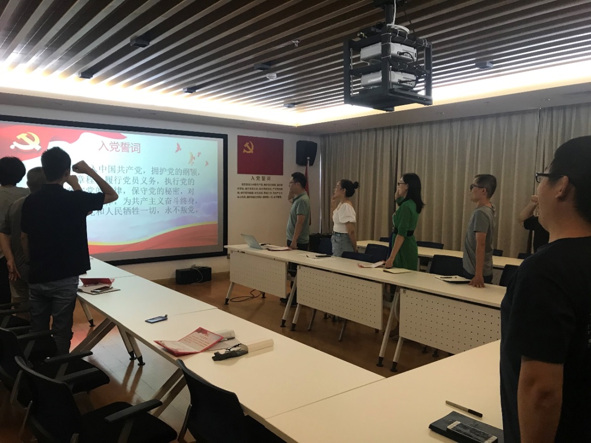 會上,支部書記陳順為6月份過政治生日的黨員同志發放政治生日賀卡,隨后支部黨員張海燕作為領誓人,帶領支部全體黨員一起重溫了入黨誓詞。