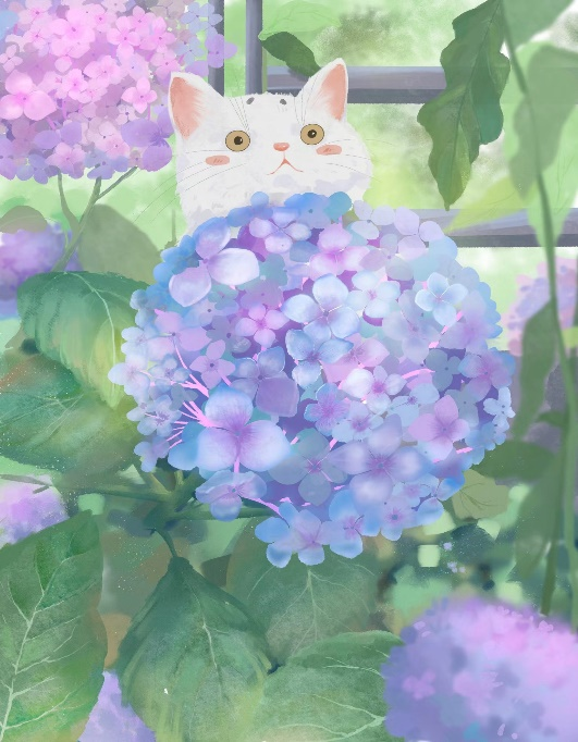 圖5.參展作品名稱《繡球與貓》(作者:劉蓉蓉)?