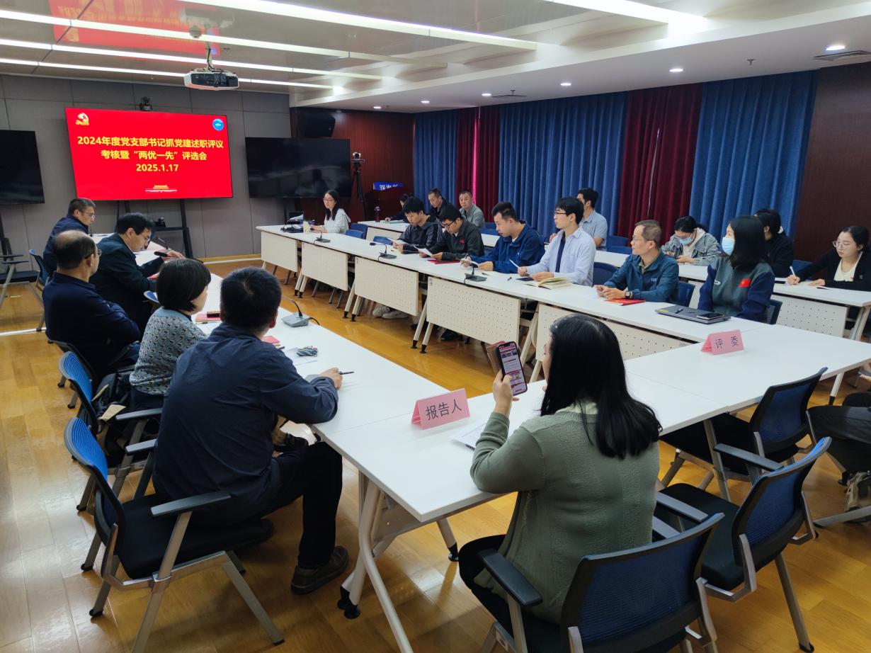 會議采取現場述職與書面述職相結合的方式,14個黨支部圍繞支部書記履職情況,重點在打造“一支部一品牌”特色工作、推動黨建與科技創新及管理工作深度融合,發揮基層黨組織戰斗堡壘作用和黨員先鋒模范作用等方面進行了交流匯報。會上,各黨支部還對2024年優秀共產黨員和黨務工作者擬推薦人員進行了簡要介紹。紀委書記孫秀錦采取“一述一評”的方式進行現場點評并提出相關建議,黨委委員、紀委委員和各支部考評代表對述職情況和“兩優一先”推薦對象進行測評打分。