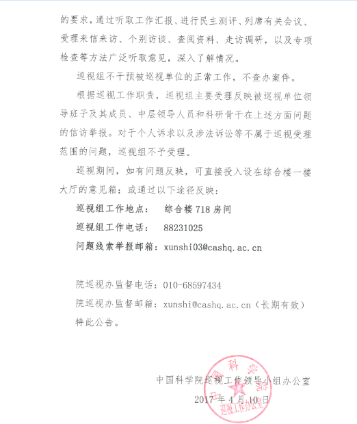 關于中共中國科學院黨組第三巡視組巡視深海科學與工程研究所的公告