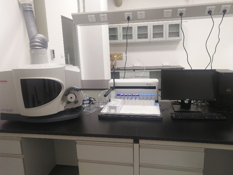 ICP-OES 7400位于綜合樓一樓101實驗室,該儀器配置了標(biāo)準(zhǔn)進(jìn)樣系統(tǒng)、垂直高鹽進(jìn)樣系統(tǒng)及垂直耐HF進(jìn)樣系統(tǒng);具有快速多元素同時分析、靈敏度高、檢出限低、耐基質(zhì)、線性動態(tài)范圍寬等優(yōu)點。可用于生物、地質(zhì)、材料、食品、環(huán)境等各類樣品中大多數(shù)元素的定量分析。