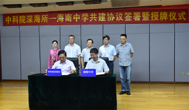 201611月24日,深海所與海南中學順利簽署合作共建協議暨 “海南中學綜合實踐基地” 授牌儀式。深海所副所長代亮、海南中學副校長林洪珊、三亞市教育局局長陳鵬程分別致辭。深海所副所長謝強、所長助理張忠,海南中學校長馬向陽、副校長陳輝等領導及開展社會實踐活動的高二部分老師、學生參加了協議簽署與授牌儀式。