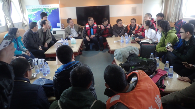 14日,深海所工作人員連同香港海洋公園、中山大學(xué)、廣東海洋大學(xué)、汕頭大學(xué)等相關(guān)科研人員、鯨豚獸醫(yī)、漁政工作人員以及潛水俱樂(lè)部志愿者共同商議抹香鯨的救助計(jì)劃。經(jīng)討論,計(jì)劃先通過(guò)采集動(dòng)物的噴氣樣本、皮膚樣本以及對(duì)動(dòng)物進(jìn)行聽(tīng)覺(jué)能力測(cè)試等方式來(lái)判斷動(dòng)物的健康狀況以確定下一步救助工作的實(shí)施。