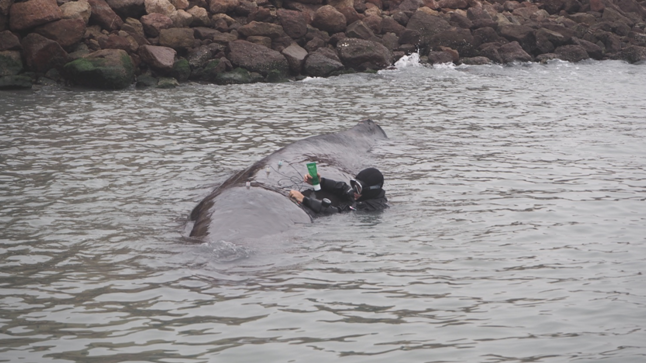 該抹香鯨最初發(fā)現(xiàn)時(shí),其周身被漁網(wǎng)纏繞。當(dāng)潛水員剪開(kāi)困住抹香鯨的漁網(wǎng)后,發(fā)現(xiàn)在動(dòng)物口中也有大量的漁網(wǎng)。且不論抹香鯨是否由于人類活動(dòng)而最終致死,但人類活動(dòng)始終對(duì)其造成了影響。這種大型鯨類一旦發(fā)生擱淺事件,救助工作難度極大。大型鯨類擱淺救助成功的案例在世界上還極為少數(shù)。希望公眾可以以此為鑒,提高海洋環(huán)境、海洋生物的保護(hù)意識(shí),同時(shí)也希望有關(guān)類似事件的應(yīng)急響應(yīng)機(jī)制能夠盡快建立,以期在類似事件發(fā)生后可以在第一時(shí)間做出科學(xué)應(yīng)對(duì)方案并進(jìn)行有效救護(hù)。