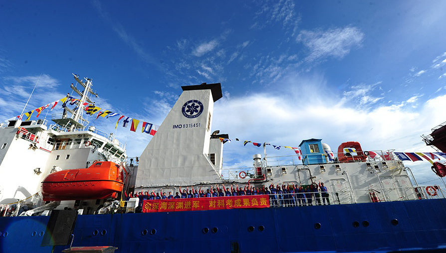 中國4500米載人潛水器及萬米深潛作業(yè)工作母船“探索一號(hào)”科考船首航取得圓滿成功