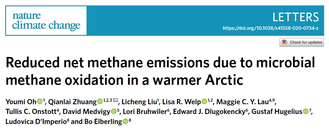 Oh, Y., Zhuang, Q., Liu, L. et al. Reduced net methane emissions due to microbial methane oxidation in a warmer Arctic. Nat. Clim. Chang. 10, 317321 (2020)