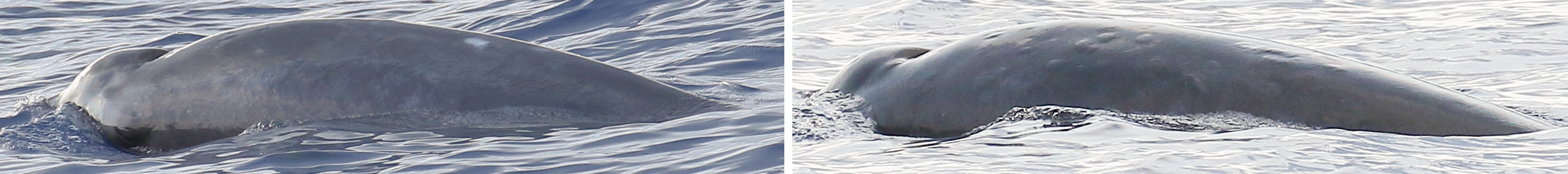 研究人員將本次拍攝到的照片與以往擱淺的銀杏齒中喙鯨和德氏中喙鯨的照片進行了比對,獲得了如下認識:1)由于頭部和張口形狀以及體色存在差異,銀杏齒中喙鯨和德氏中喙鯨個體可以很容易地與其它喙鯨種類區分開來,從外形和膚色來看,本次目擊到的喙鯨應該是銀杏齒中喙鯨或德氏中喙鯨;2)盡管在本次研究中收集到的照片數據質量相對較高,但由于物種之間在體色模式和疤痕模式的高度相似性,因此無法對活體銀杏齒中喙鯨和德氏中喙鯨進行準確分類;3)初步收集到的潛水和浮出水面行為的數據與在其它喙鯨中觀察到的數據相似,這表明銀杏齒中喙鯨或德氏中喙鯨的遇見幾率和可接近性可能與其它喙鯨類似;4)未來的研究應該證實在銀杏齒中喙鯨或德氏中喙鯨標本中的唇線凹痕是否是正常存在。事實上,唇線凹痕有可能是由于漁具或海洋垃圾造成的。