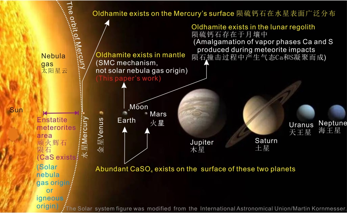 圖1. 太陽系中隕硫鈣石CaS的主要分布區(qū)域(Liu et al., 2023)