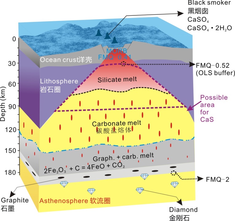 文章首次指出隕硫鈣石可能在洋中脊下覆地幔存在,其可能是黑煙囪部分硫酸鈣的前體(圖3),該機制是對Bischoff and Seyfried (1978)認為洋中脊硫酸鹽是由于Ca和SO42-在海水中的溶解度隨著溫度的升高而降低機制的補充。