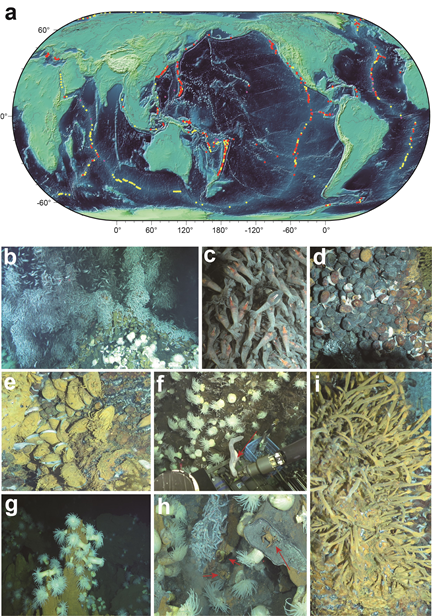 全球熱液噴口分布及熱液區的典型無脊椎動物