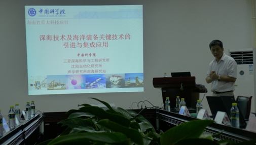 該項(xiàng)目總負(fù)責(zé)人三亞深海所總工程師張艾群研究員,對“深海技術(shù)及海洋裝備關(guān)鍵技術(shù)的引進(jìn)與集成應(yīng)用”總體情況和實(shí)施方案做了匯報(bào)。項(xiàng)目子課題承擔(dān)單位中科院沈陽自動化所俞建成研究員、張奇峰研究員,中科院聲學(xué)所南海站甘維明副研究員、張鎮(zhèn)邁工程師等項(xiàng)目骨干成員參加會議并分別做了報(bào)告。
